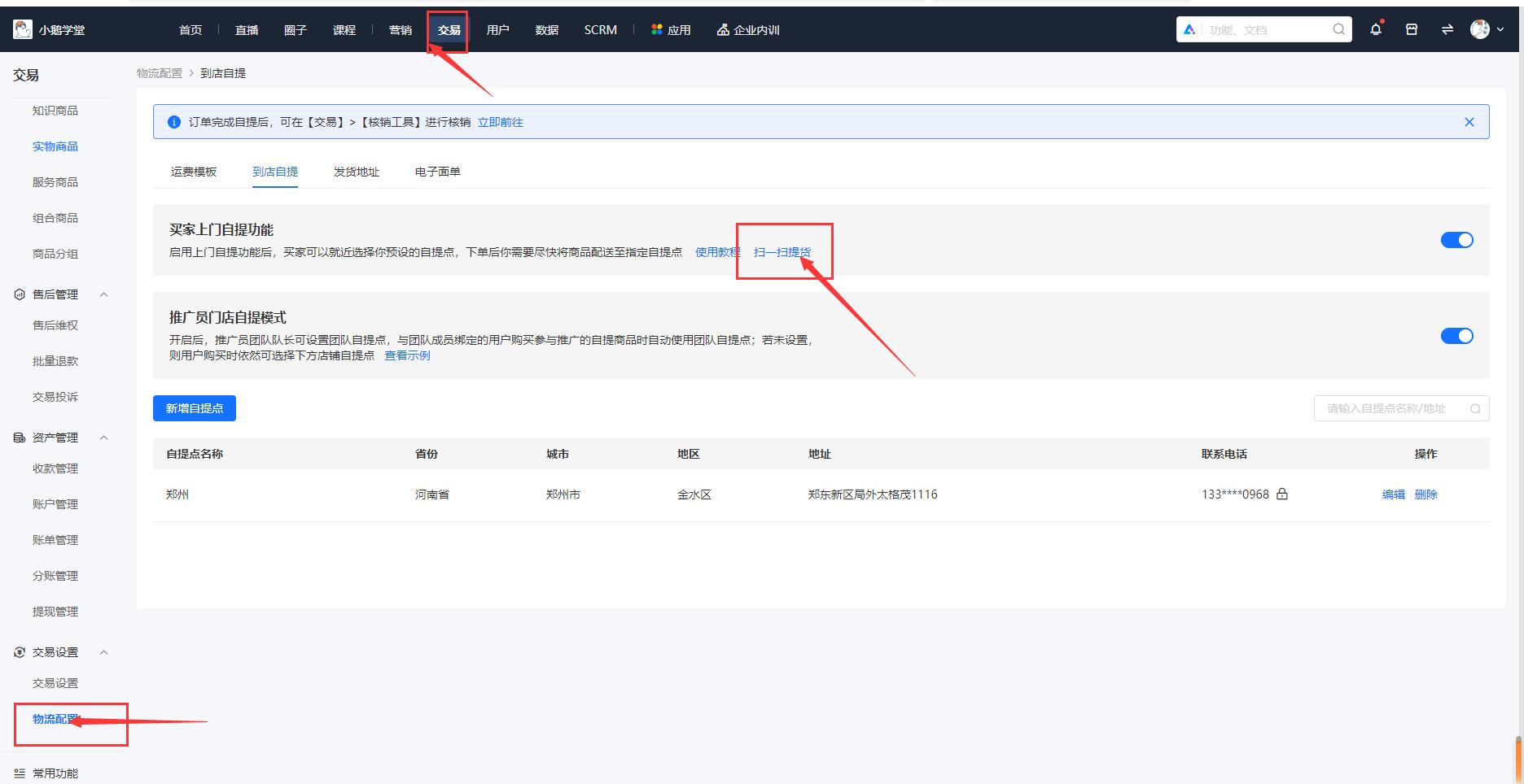 小鹅通用户线上购买商品,需要到店自提的时候,小鹅通商家门店怎么完成核销呢?