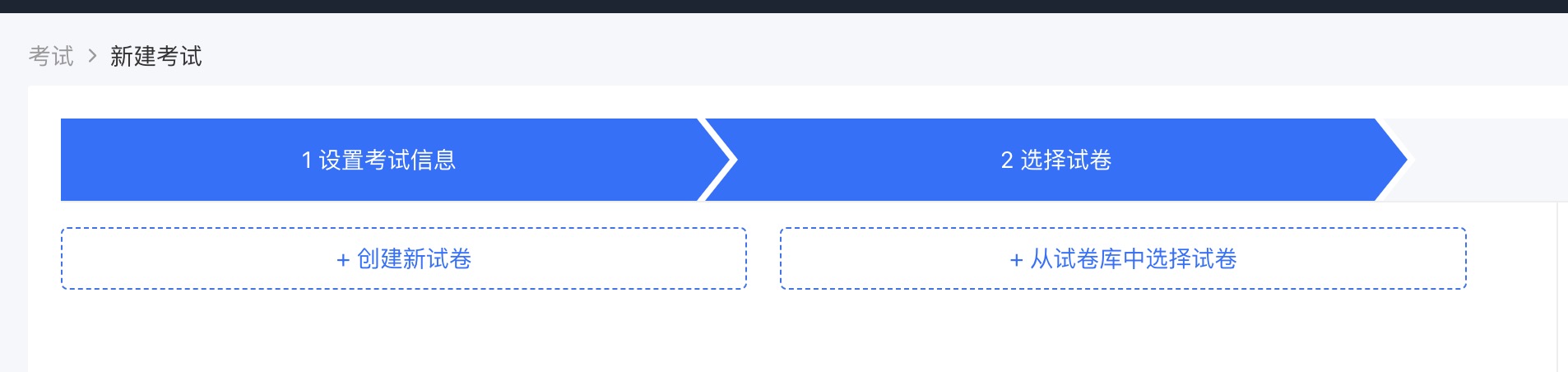 2. 选择试卷支持创建新试卷和从试卷库选择点击下一步——完成发布