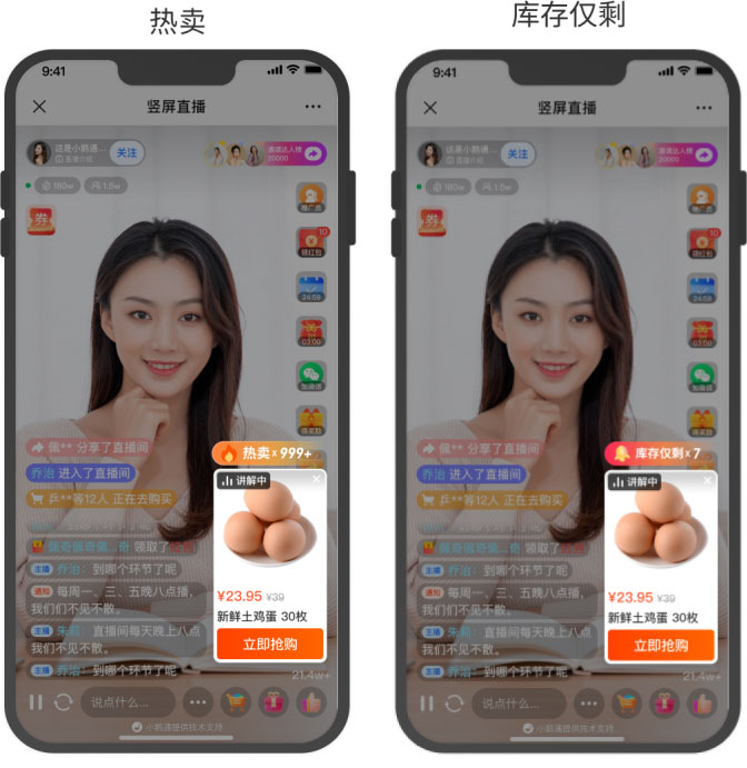 很多小鹅通商家在用小鹅通直播的时候,在直播间带货时,想在小鹅通直播间显示带货商品的库存及热卖,刺激直播间用户下单购买。