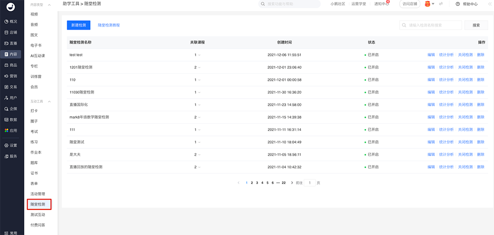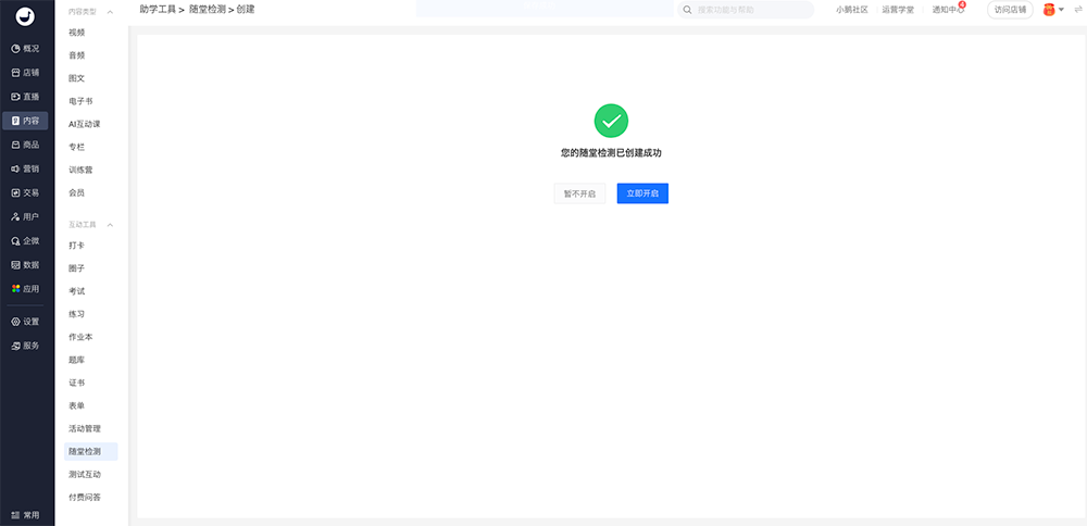 商家端:店铺管理台 → 助学工具 → 随堂检测