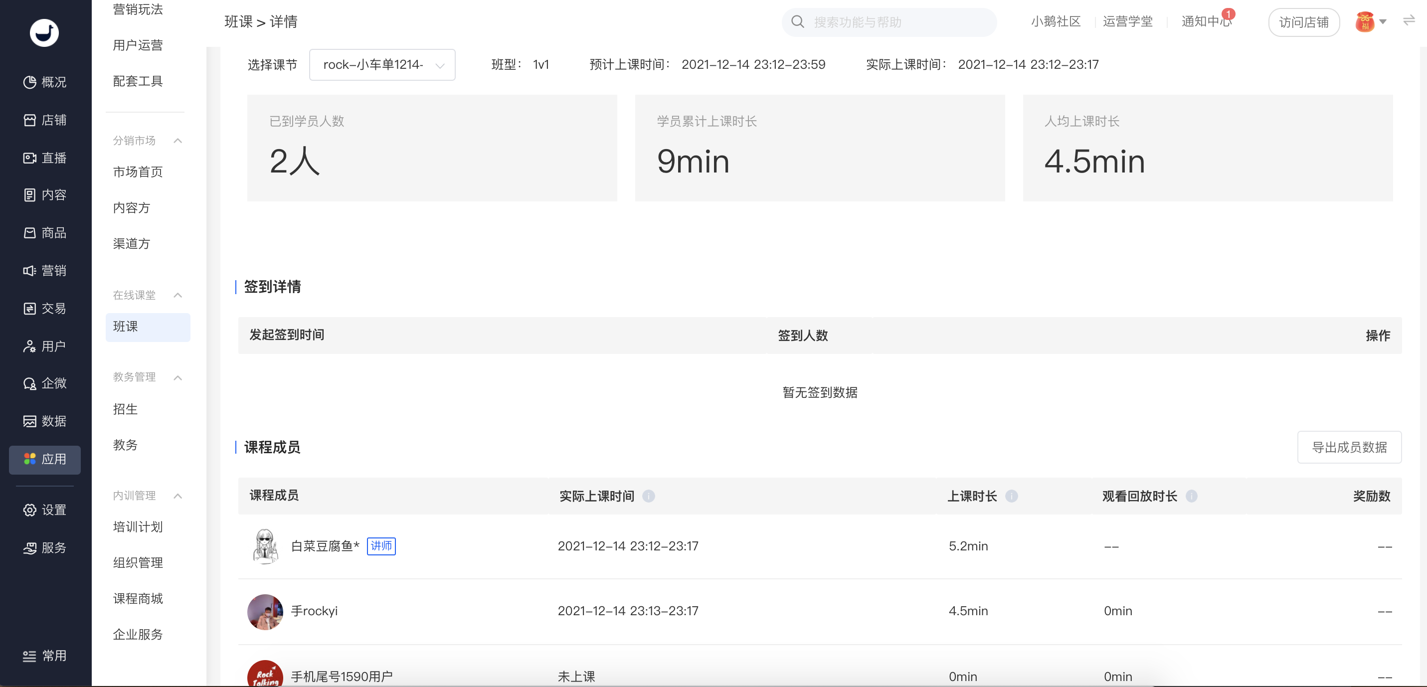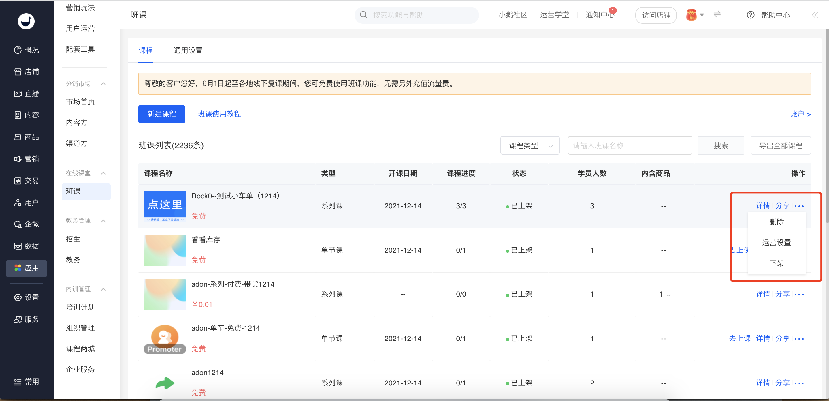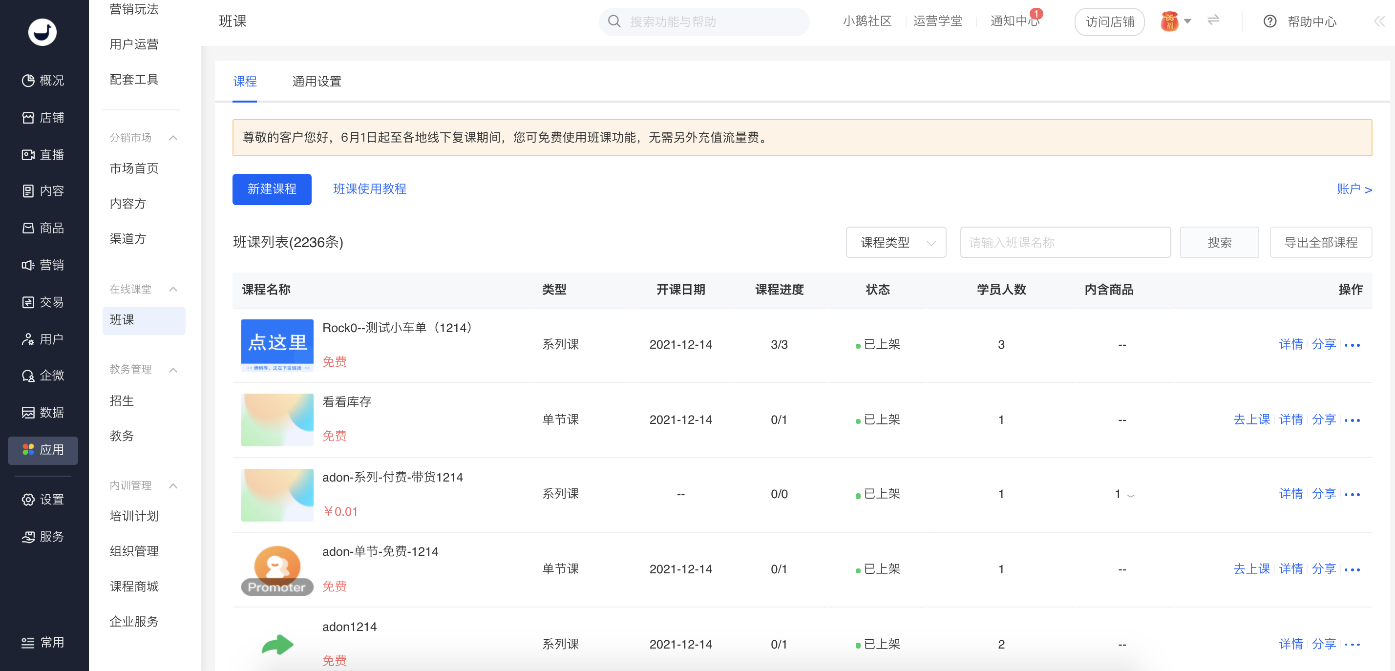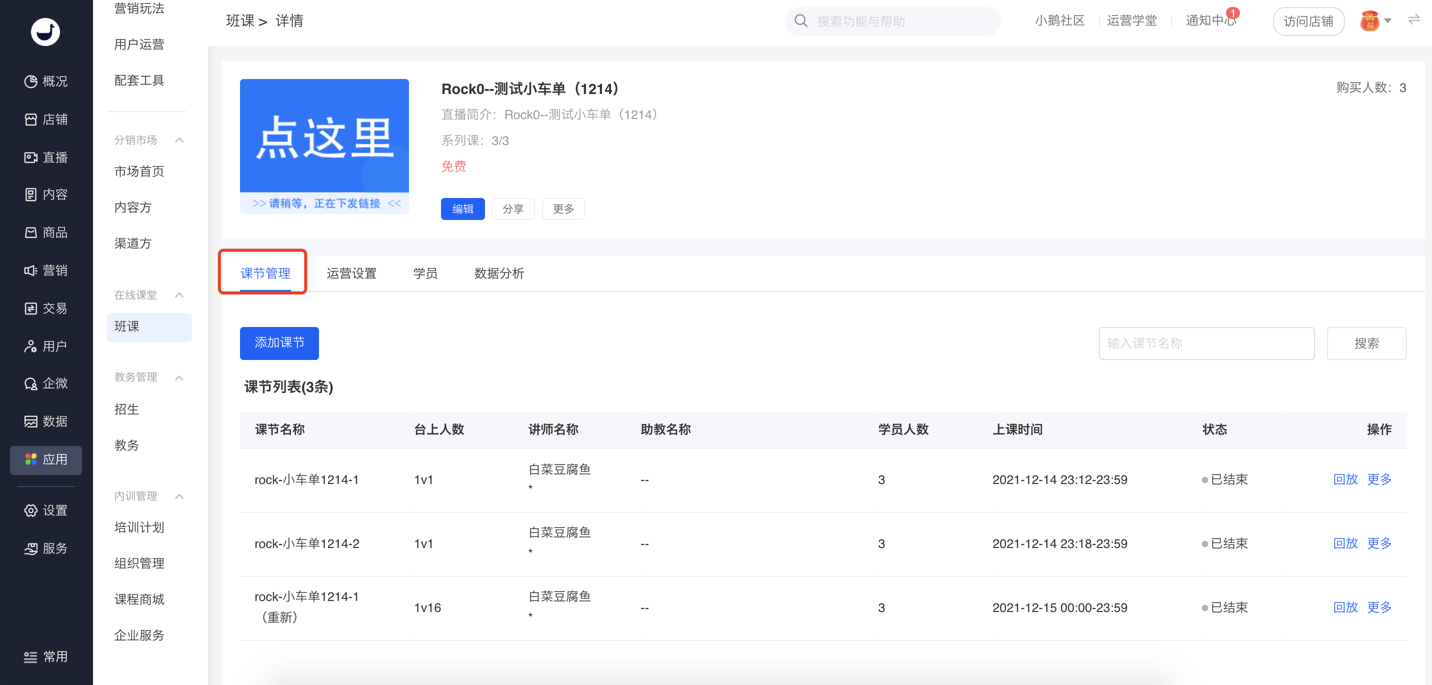 进行班课的创建,课程、课节管理与讲师学员管理。