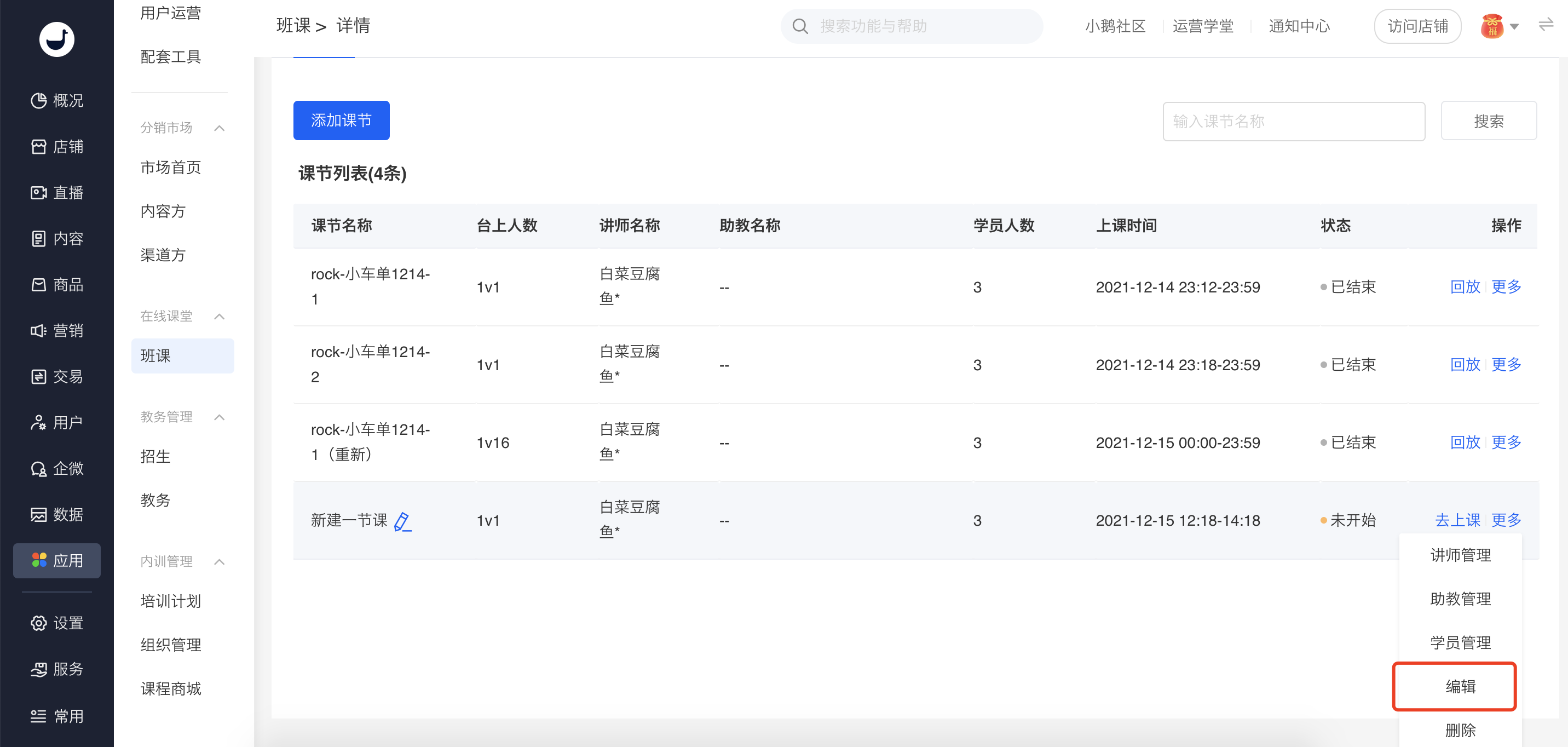 4、系列课列表内点击编辑可修改课程名称、台上人数、上课时间。