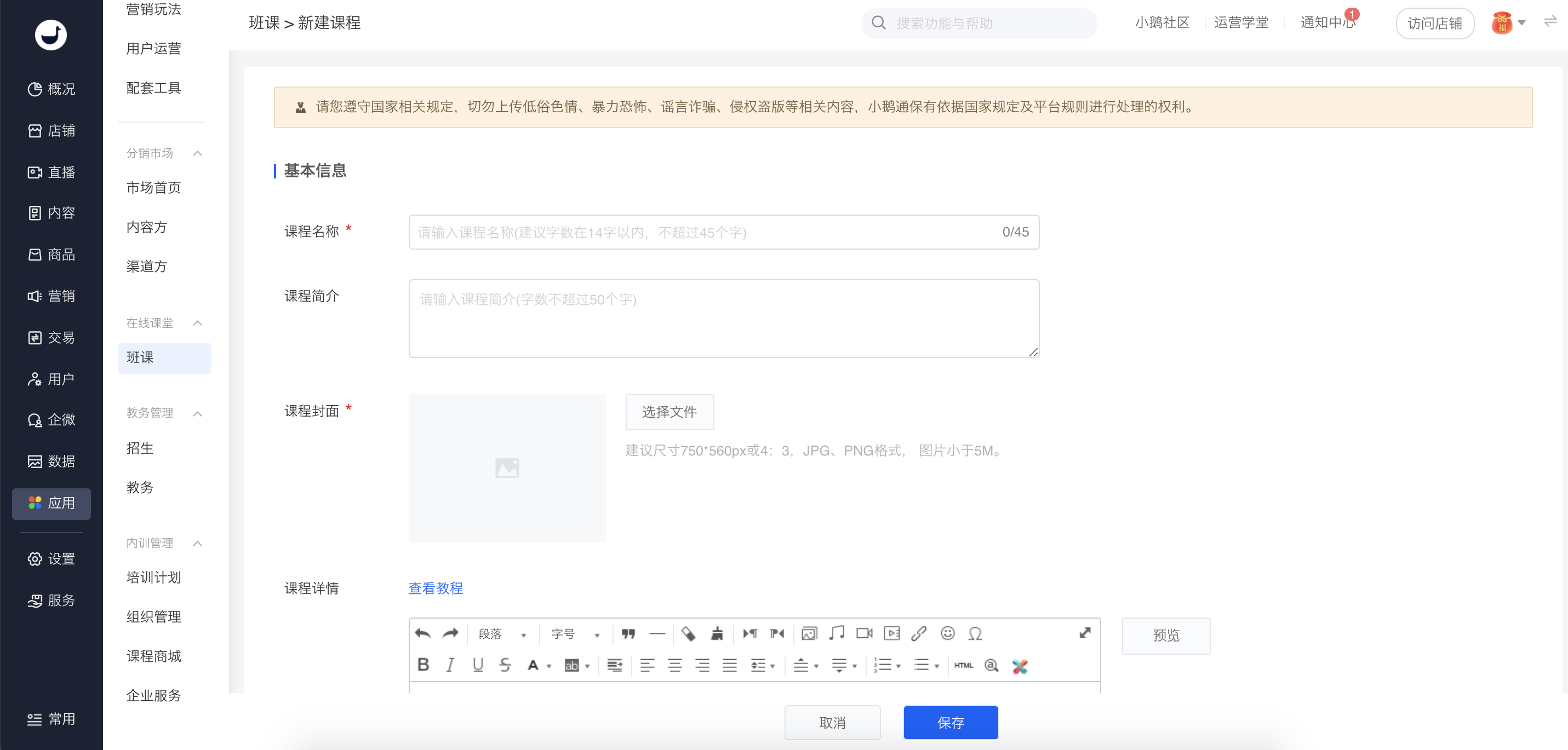 1、基本信息:课程名称、课程简介、课程封面、课程详情