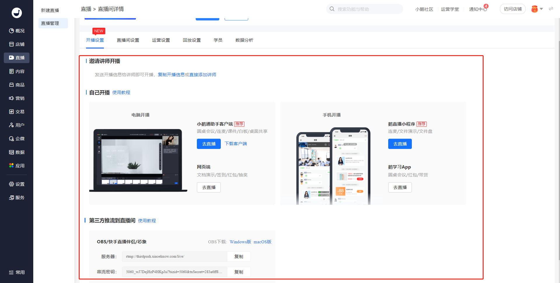 2)PC客户端-小鹅通助手:适用于需要展示电脑桌面并实时互动讲解的直播
