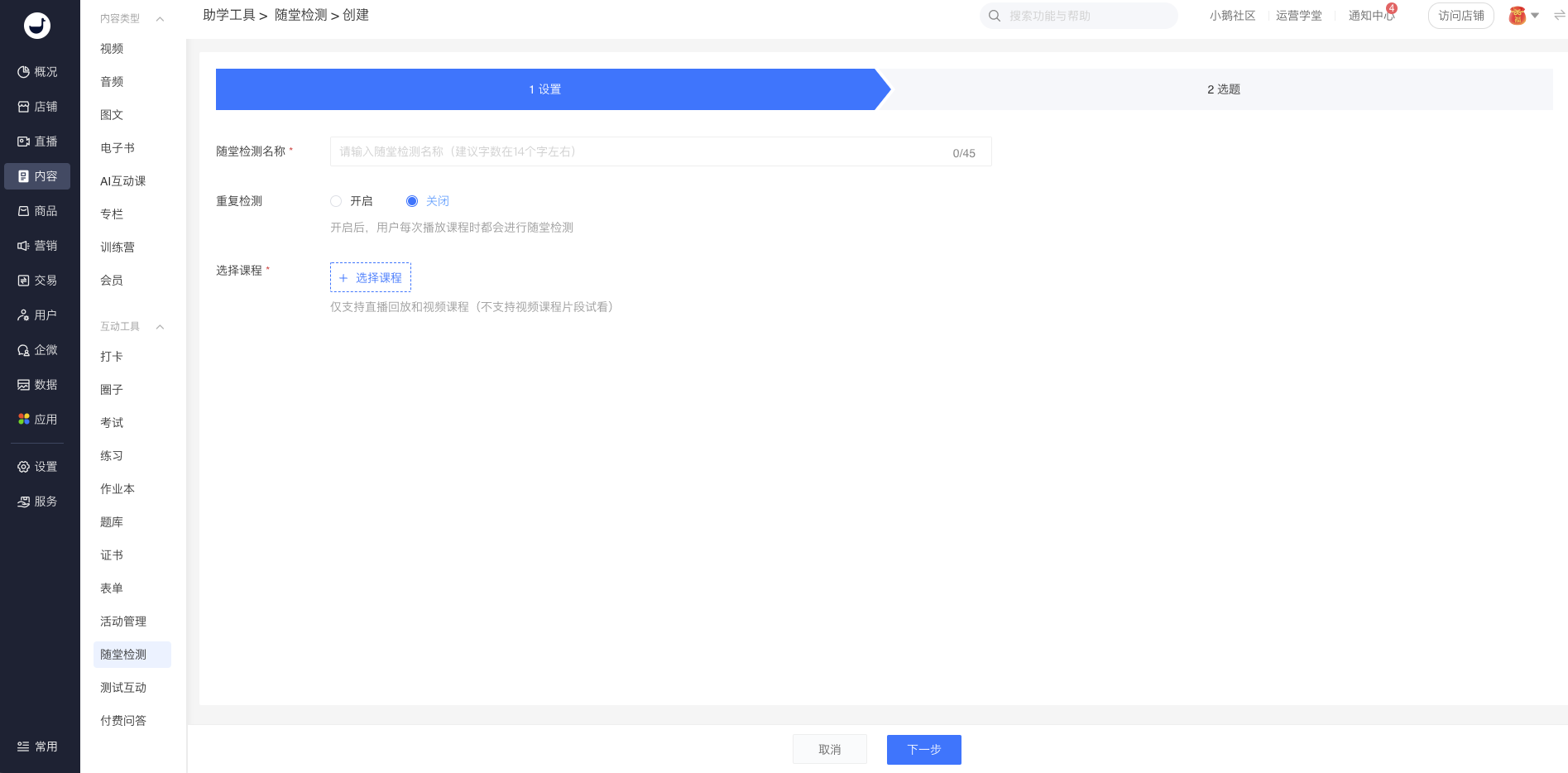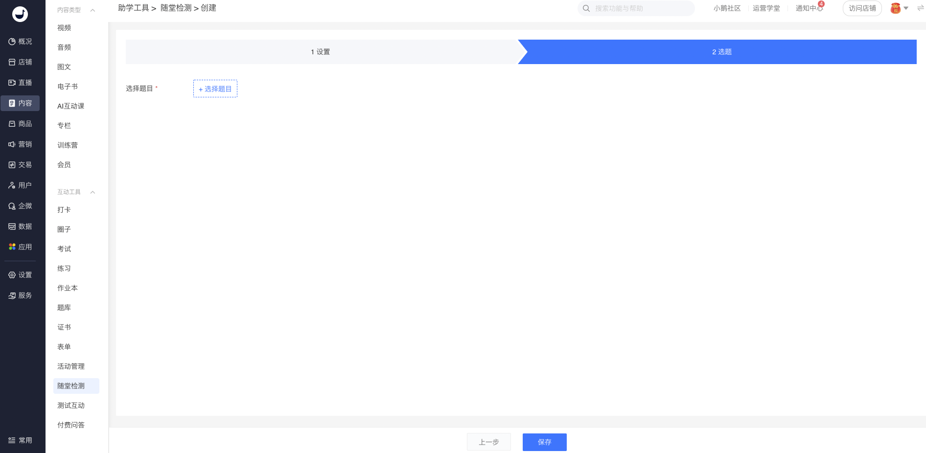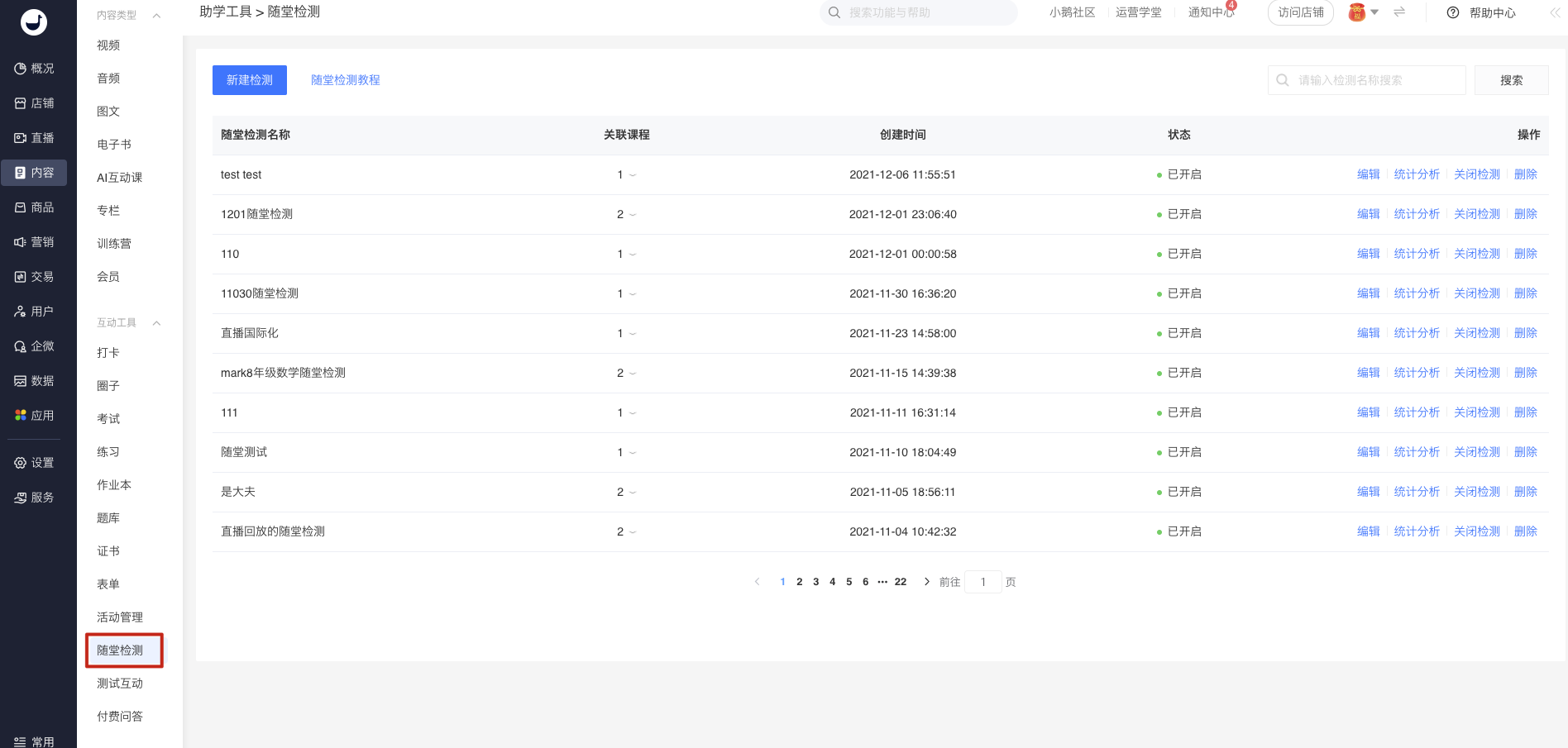 商家端:店铺管理台 → 助学工具 → 随堂检测