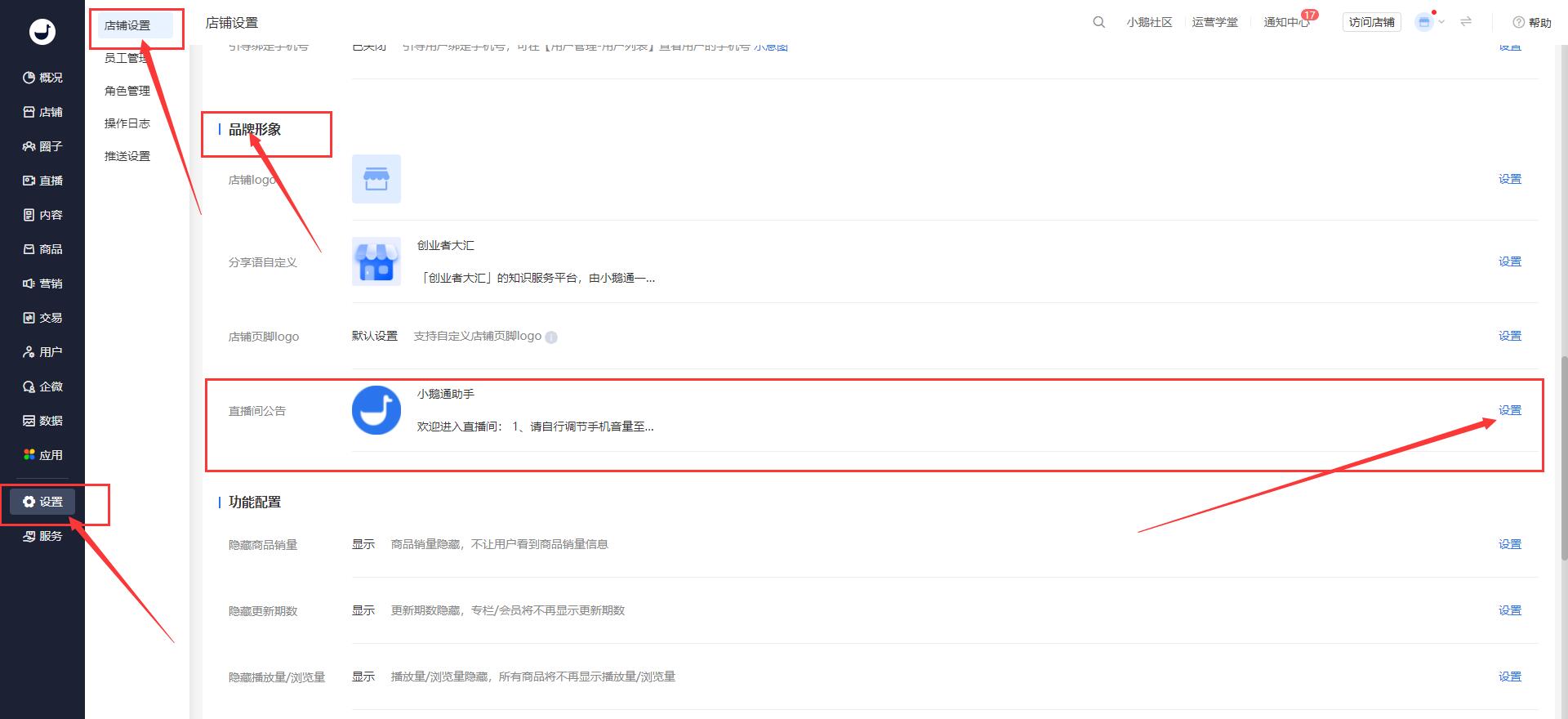 直播间公告是可以修改的,在【设置】→【店铺设置】→【品牌形象】→【直播间公告】可以进行修改自定义