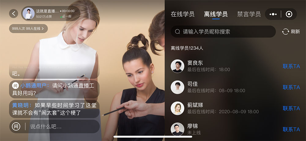 **注:目前离线学员列表仅支持在鹅直播小程序使用