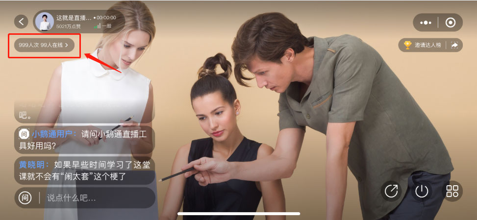 第二步 客户端直播间内即可看见直播间的在线学员列表