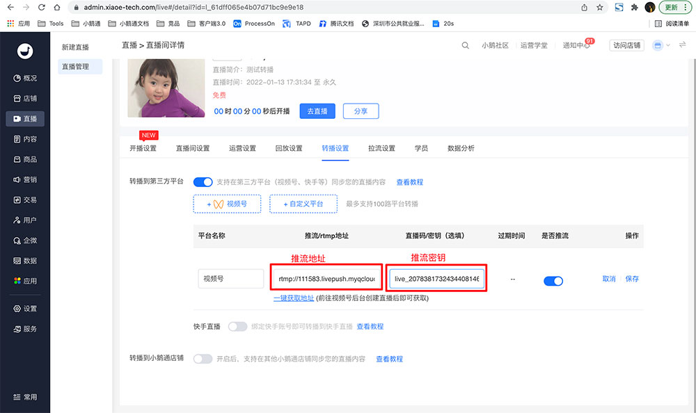 3、将推流地址替换为最新即可;