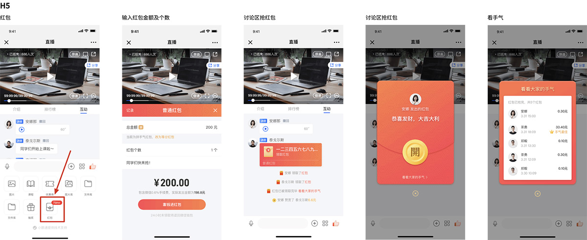场景三:直播进入高潮,讲师通过发红包来进一步拉近和学员之间的距离。