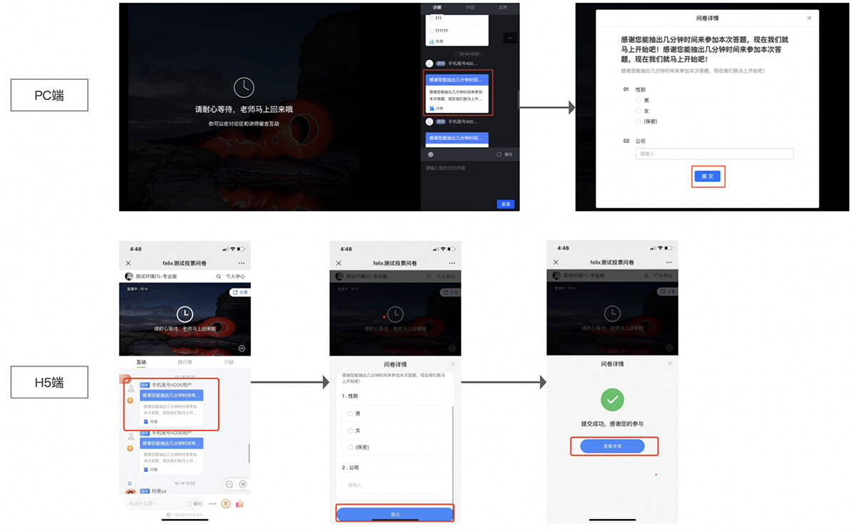 第四步:学员参与问卷流程(web端/H5端/鹅直播小程序)