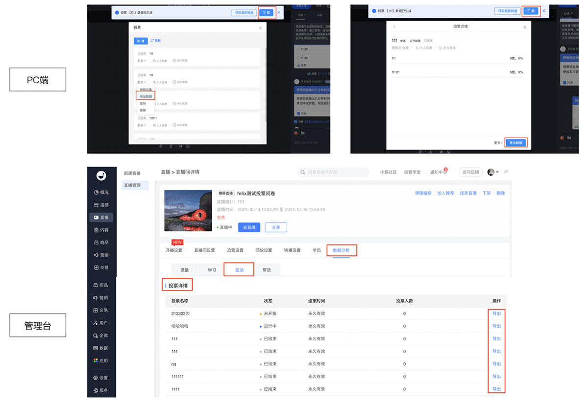 ○ 管理台:直播间详情-数据分析-互动-投票详情