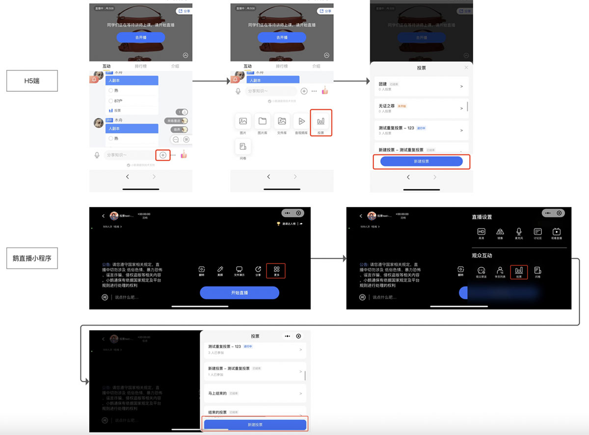 ● H5端:直播间-点击+号-选择投票-点击新建投票
