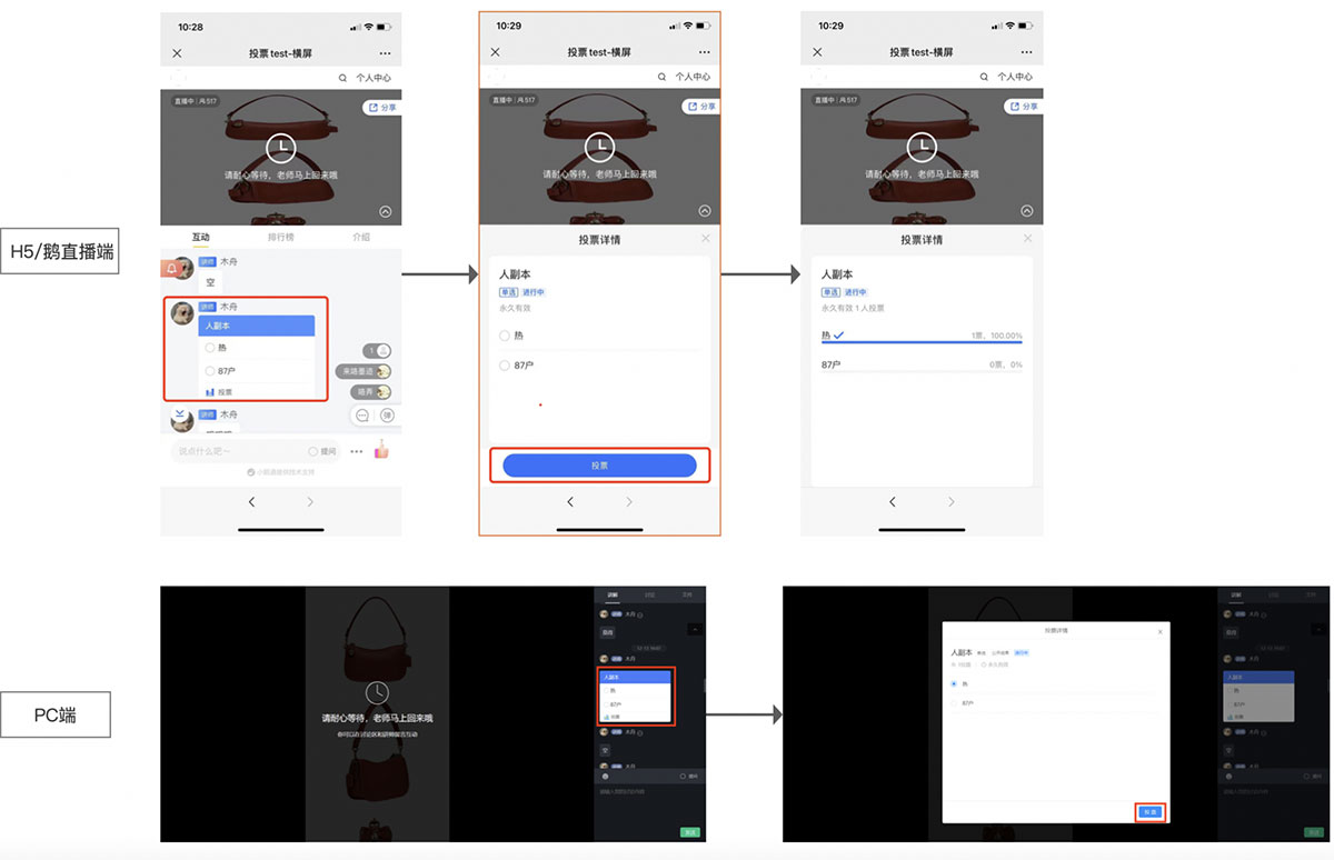 ● 场景二:商家在举办一场【获客引流型】的直播,可发起发某个投票,收集用户对后续直播内容的意向,使商家直播内容更具有针对性。