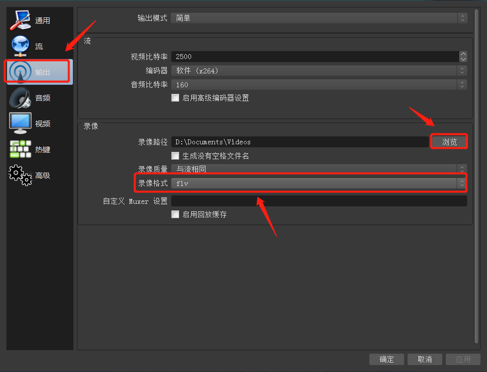 商户在使用OBS过程中,可使用OBS软件将推流过程中的视频进行录制,录制完成后即可查看使用