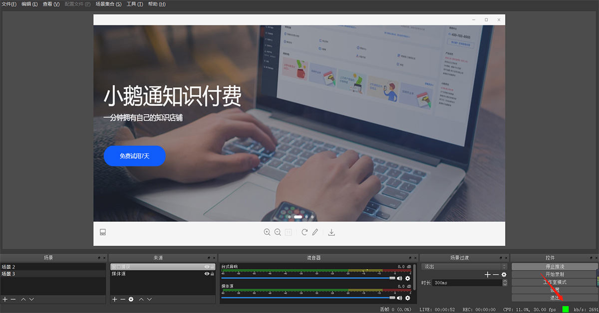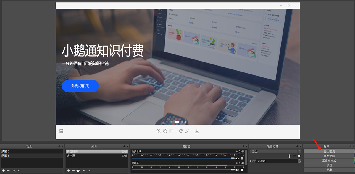 2、 在OBS操作区是否点击了开启推流按钮进行推流;如果已开始推流,右下角应显示为“停止推流”。