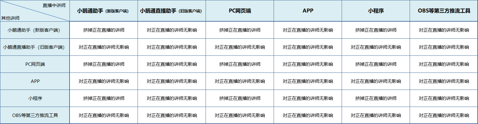 讲师正在直播,其他讲师进入直播间开始直播会发生什么?