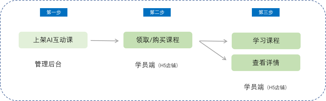 商家可以利用AI互动形式的课程内容,实现精细课程设计和交互式学习的最小“学练测”闭环,搭建相比其余单品课更具有沉浸式场景的课程架构。课程一方面提升了学员学习体验及效果,另一方面降低课程后期运营成本,学员可通过购买课程进行学习。