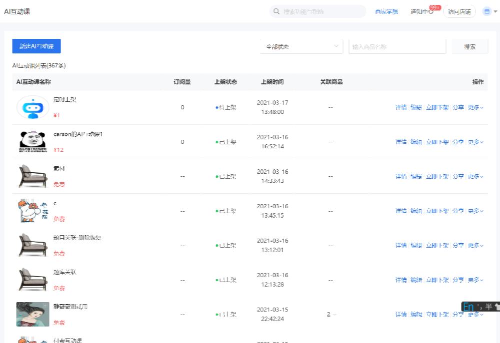AI互动商品不仅可供学员体验更加富有趣味性、个性化、强互动的课程形式,商家还可以售卖获得收益。