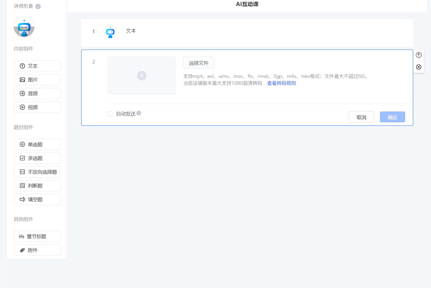 商家端:商家后台 →内容-内容类型 → AI互动课 → 新建AI互动课