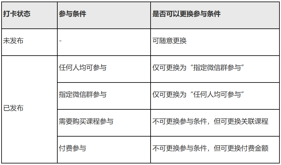 打卡活动可以更换参与条件吗?