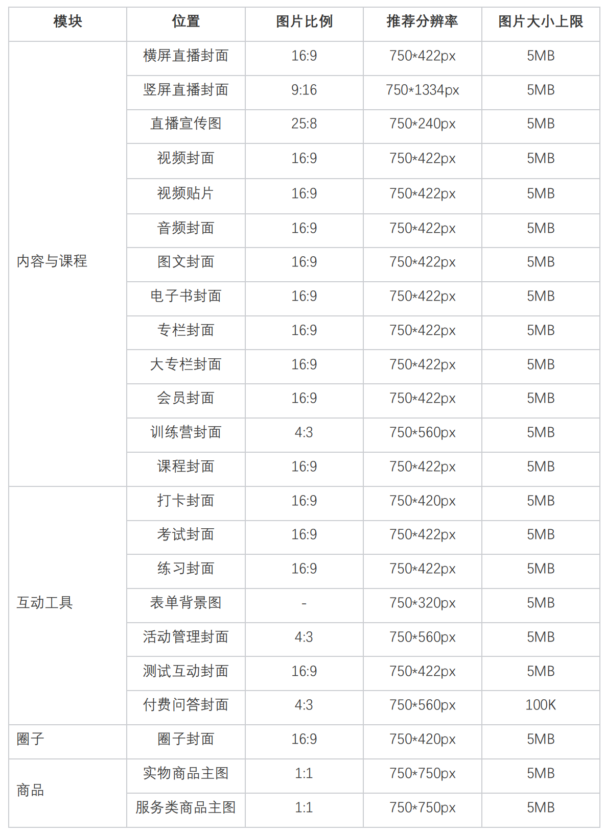 小鹅通后台图片规格清单