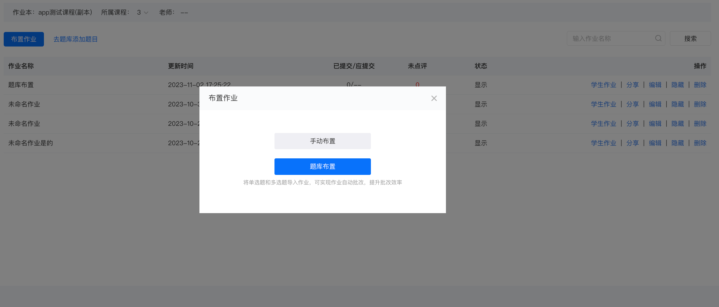 1、选择【布置作业>题库布置】,点击从【题库导入题目】