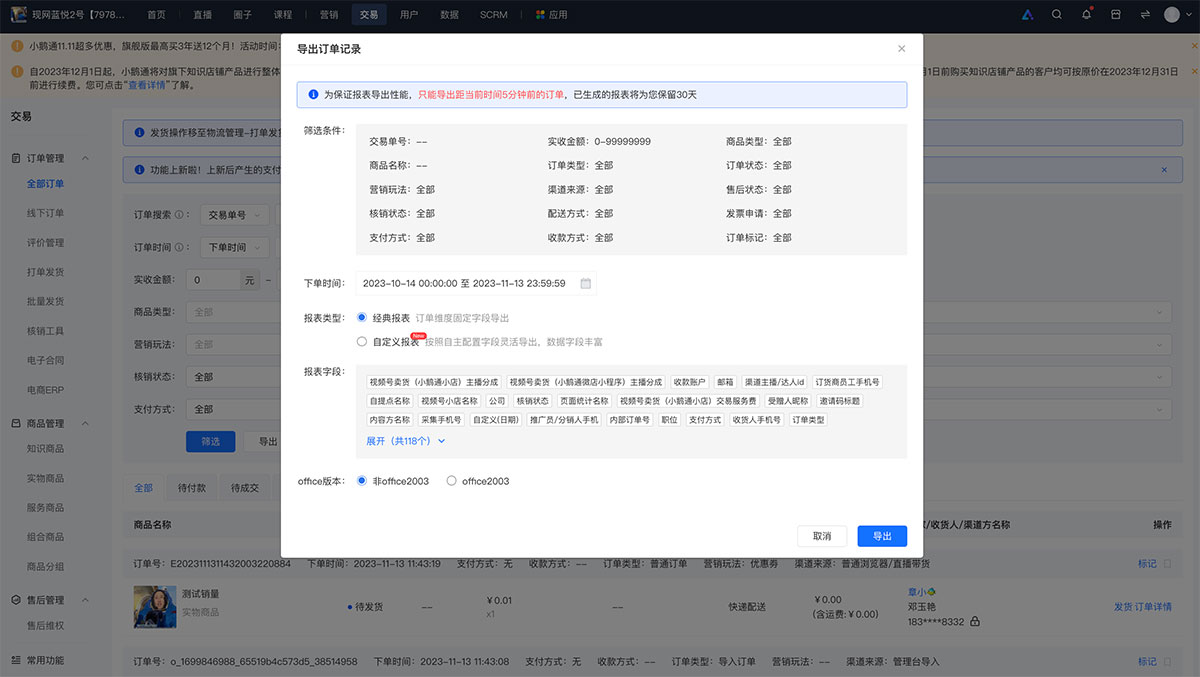 小鹅通订单是否支持筛选导出?