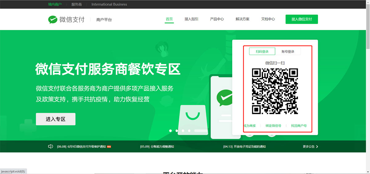 1)登录微信支付-商户平台,网址:https://pay.weixin.qq.com/;