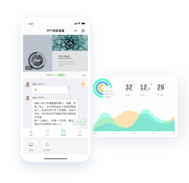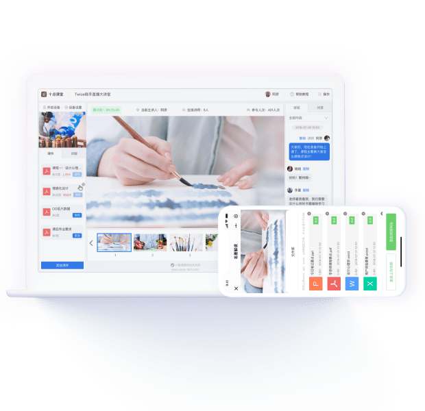讲师可选择在PC端或手机端进行直播,适应多种场景